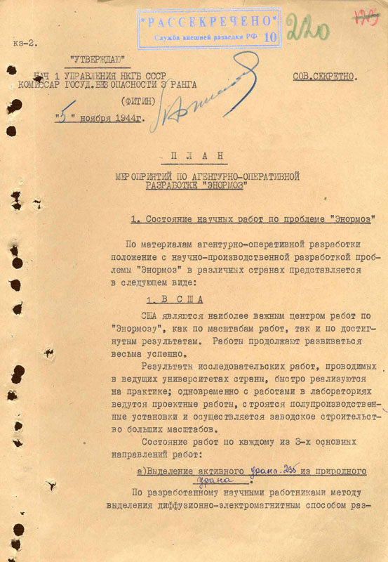 Kirpichenko on Theft of US Nuclear Secrets - The Document in Russian Only